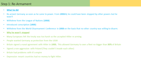 | What did Hitler do to Re-arm? Why wasn't he stopped? | |
