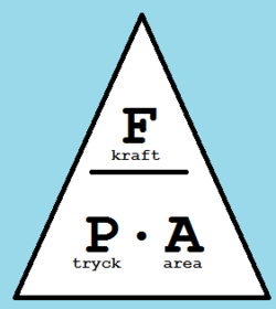 | Vad är tryck? | Ett begrepp inom fysiken och det är samma som kraft per ytenhet. |