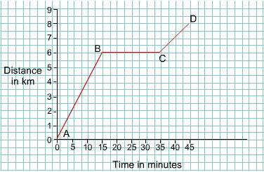 | Describe when the object goes slowly, goes quickly and stops. | The object goes quickly from A-B. Stops from B-C. Goes slowly from C-D. |