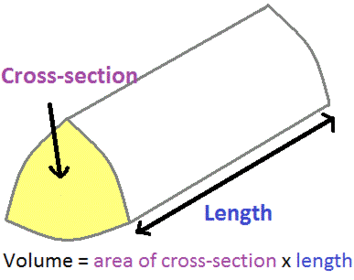 | Volume cylinder | Volume = Area of base (which is a circle) x height \[V=\pi\,r^2\,h\] |