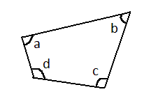 | Angles in a quadrilateral add up to | \[360\,^{\circ}\] |
