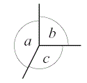| Angles around a point add up to | \[360\,^{\circ}\] |