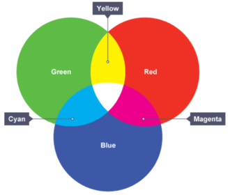 | What are the primary and secondary colours of light? | The primary colours are green, red and blue. The secondary colours are cyan, yellow and magenta. |