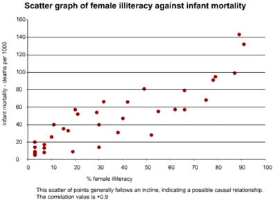 DISPERSION GRAPHS- used to display the main patterns in data distribution, graph show each value as individual point against a vertical scale, shows range of data and distribution within the range +enables comparison of the degree of bunching of 2 sets of data, +shows spread from mean, +anomalies shown, -works better with lots of data, -standard deviation can be manipulated (biased) |