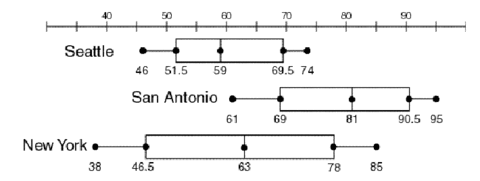 | BOX-AND-WHISKER PLOTS- need median, Q1, Q3, highest value, lowest value and outliers. The box contains 50% of the data and is the IQR | |