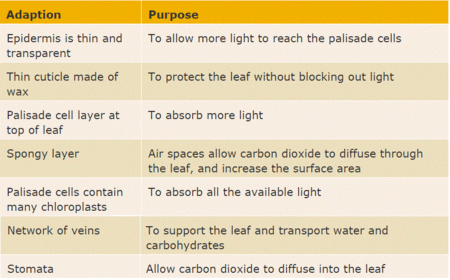 | What is the function of each layer in the structure of a leaf ? | |