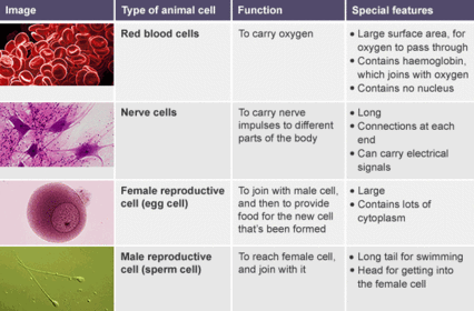 | What are Specialised Cells ? Give 3 examples and say how this helps them carry out their job. | |
