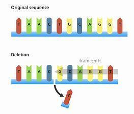 | Deletion mutation | is a mistake in the DNA replication process which removes nucleotides from the genome. It can remove a single nucleotide or entire sequences of nucleotides. |