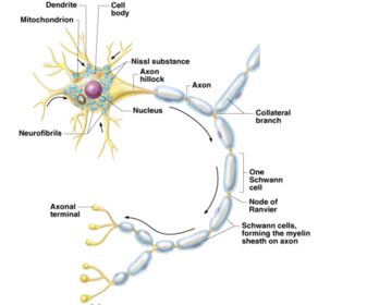 | Nerve Axon Coverings | Schwann cells – produce myelin sheaths in jelly- roll like fashion Nodes of Ranvier – gaps in myelin sheath along the axon |
