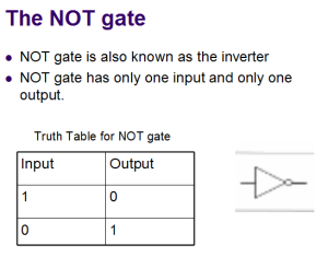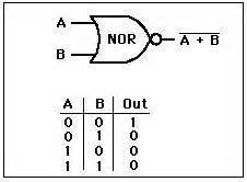 | The NAND gate operates as an AND gate followed by a NOT gate. The output is "false" if both inputs are "true." Otherwise, the output is "true." | he NOR gate is a combination of the OR gate FOLLOWED by an inverter. Its output is "true" if both inputs are "false." Otherwise, the output is "false." |