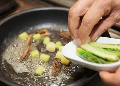 | Sauté To cook small pieces of food in a small amount of fat over low-medium heat. LD | |