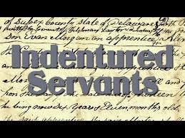 | Indentured Servant | A person under contract to work for another person for a definite period of time, usually without pay but in exchange for free passage to a new country |