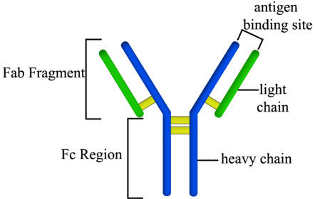 | 2x FAB region fragment antigen binding | They contain the antigen binding sites |