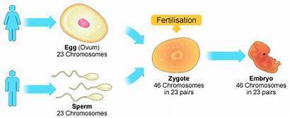 | How many numbers of chromosomes does a sperm/ egg have? | They have half the number of chromosomes. 23 Chromosomes. Called a haploid cell. |