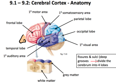 | Cerebral Cortex - Function Parietal lobe | • Integrates sensory messages travelling from the body’s sensory receptors • Enables awareness of pain, cold, heat, and touch |