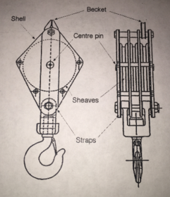 | What are the essential parts of any block? | Shell Sheaves Center pin Straps Becket |