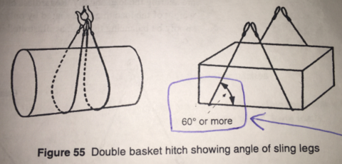 | What is a double basket hitch and how do you calculate its SWL? | Two Basket Hitches used to lift a part. SWL x H/L x 4 |