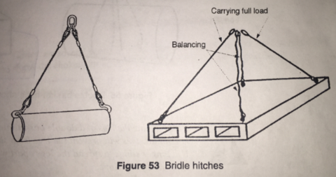 | What is the formula for the SWL of a two-leg bridle hitch? How does it differ from a basket hitch? | SWL x H/L x 2 It uses the same formula as the Basket Hitch but use the shortest length hitch when doing the calculation. |