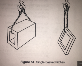 | What is a single basket hitch? | A single length of sling material passed through a load |