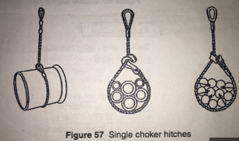 | What is a single choker hitch? | A single sling is hooked back to itself just above the load |