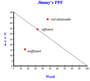 | On the PPF, where is attainable, efficient, inefficient? | |
