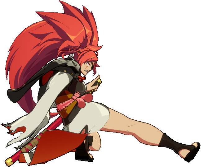 | Baiken 2D (2-hit sweep) Guard: Low Startup: 10 Active: 6, 3 Recovery: 21 On-Block: -10 | |