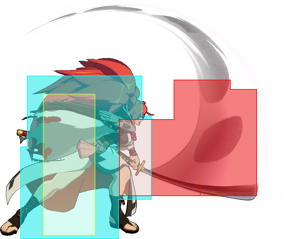 | Baiken 6H Guard: All Startup: 20 Active: 8 Recovery: 24 On-Block -13 | |