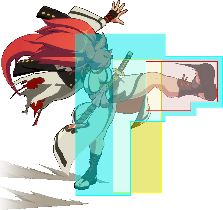 | Baiken jP Guard: High Startup: 5 Active: 3 Recovery: 13 | |