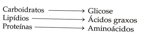 | Macronutrientes | São degradados até suas unidades mínimas durante a digestão |