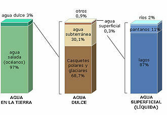 | Compuestos inorgánicos en el agua Los componentes presentes en el agua varían, ya que a medida que tiene un contacto con el suelo y con distintas formaciones geológicas, adquiere diversas sustancias minerales, incluso, al estar en contacto con la atmósfera, también posee gases disueltos como el oxígeno, nitrógeno y Dióxido de carbono. Por lo que el contenido del agua depende de donde se ubique y los elementos y compuestos que tenga presente en sus alrededores Fuentes: DGE, 2016. Composición del agua en la naturaleza. En: https://aquabook.irrigacion.gov.ar/310_0 |