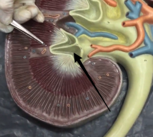 | Kidney - Renal Hilum continues into the renal sinus, in the direction of the paraenchyme | |