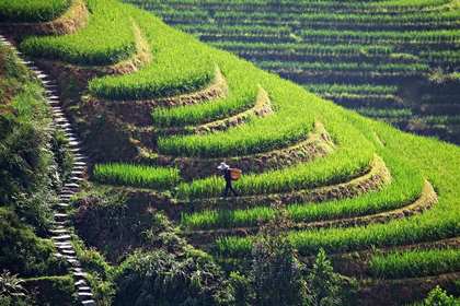 | rice terraces | Steps built into a mountain that stops the downhill rush of water and enables rice to grow. Helps to fight erosion. |