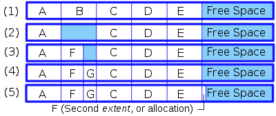 | de-fragmentation is a process that reduces the amount of fragmentation organizing the contents of the mass storage device used to store files into the smallest number of contiguous regions. | this is an example of de-fragmentation |