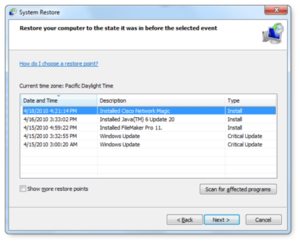 | System restore | System restore allows users to restore their computers to a previous state without losing personal data files. |