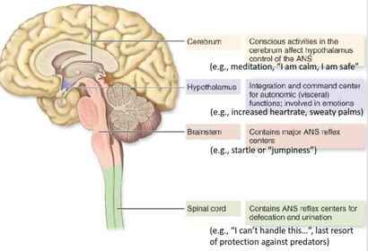 | cerebrum | conscious activities in the cerebrum affects hypothalamus control of the ANS |
