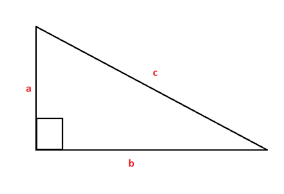 | Pythagoras' theorem: Right-angled triangle: a, b and c are the length of the sides and c is the hypotenuse: | The square of a hypotenuse is equal to the sum of the squares of the other two sides. \(a^2\)+\(b^2\)=\(c^2\) |