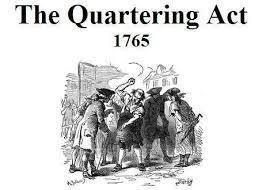 | Quartering Act | part of the intolerable acts; act that required colonist to house and feed british soldiers. |