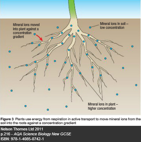 | Give an example of when active transport is carried out by cells? | - Active transport is used by roots to absorb mineral ions - By kidney tubules to reabsorb glucose |