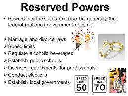 | Reserved Powers | Powers that the Constitution does not give to the national government that are kept by the states. |