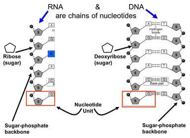 | 3) Compare DNA and mRNA. Name of sugar, number of carbon atoms in sugar, number of polynucleotide chains in molecule and location in cell. | DNA: deoxyribose, 5, 2, in the nucleus RNA: ribose, 5, 1, in the cytoplasm |