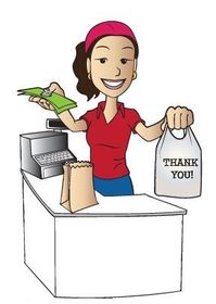 | She is concentrated on giving some change when we pay for some products. | Cashier |