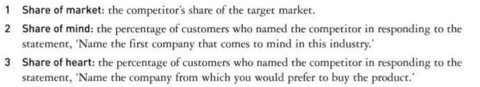 | When analysing competitors, what are the 3 variables that companies should keep in mind? | |