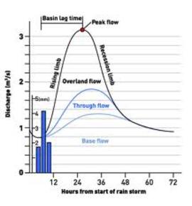 | factors that increase discharge and make the hydrograph steeper | high rainfall intense rainfall impermeable rock previously wet conditions - saturated soil steep slopes less vegetation |