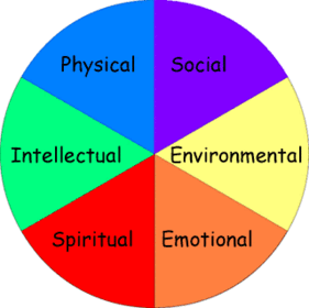 | What are the Dimensions of Health? | 1. Physical Health 2. Social Health 3. Intellectual Health 4. Emotional Health 5. Spiritual Health 6. Environmental Health |