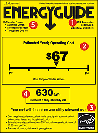 | Energy Guide Label S.B. | Yellow sticker, required by law, which allows a consumer to compare the yearly cost to operate an appliance. |