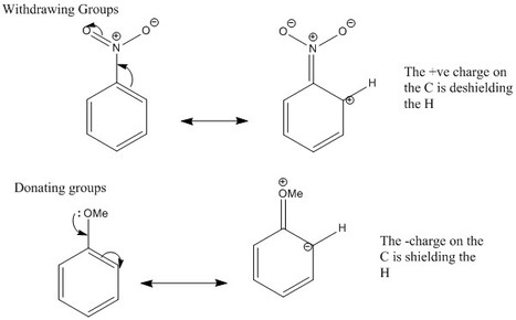 | H NMR Withdrawing groups next to the proton | the proton is more deshielded |