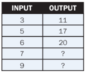 | Find: a) the 2 missing numbers in the table. b) the term-to-term rule. | |