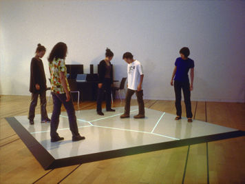 | -Artist was artist turned programmer who worked for Adobe and helped create After Effects -Uses both programming and art skills in work -Using tech (cameras, projectors, and highway plastic) to create a work about personal space and making connections | Boundary Functions Scott Snibbe 2000 |