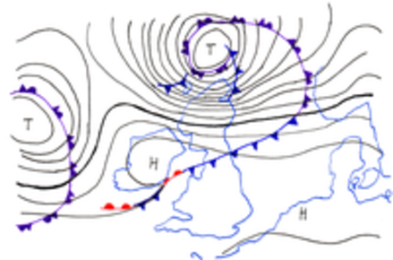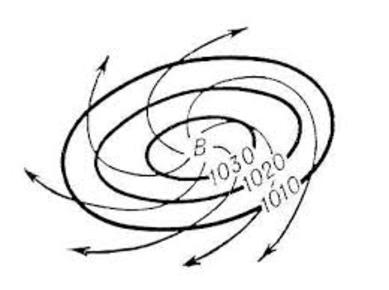 | Изобари | Криви, затворени линии, свързващи места с еднакво атмосферно налягане. |