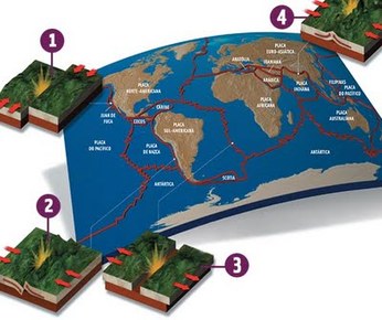 | A Teoria da Tectónica das Placas, é constituída de placas que se movimentam interagindo entre si. | |